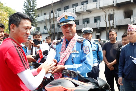 काठमाडौँ, ३० चैतः काठमाडौं उपत्यका ट्राफिक प्रहरीले चोरी भएका र हराएका मोटरसाइकल तथा स्कुटर फेला पारी आज सम्बन्धित सवारीधनीलाई हस्तान्तरण गरेको छ ।