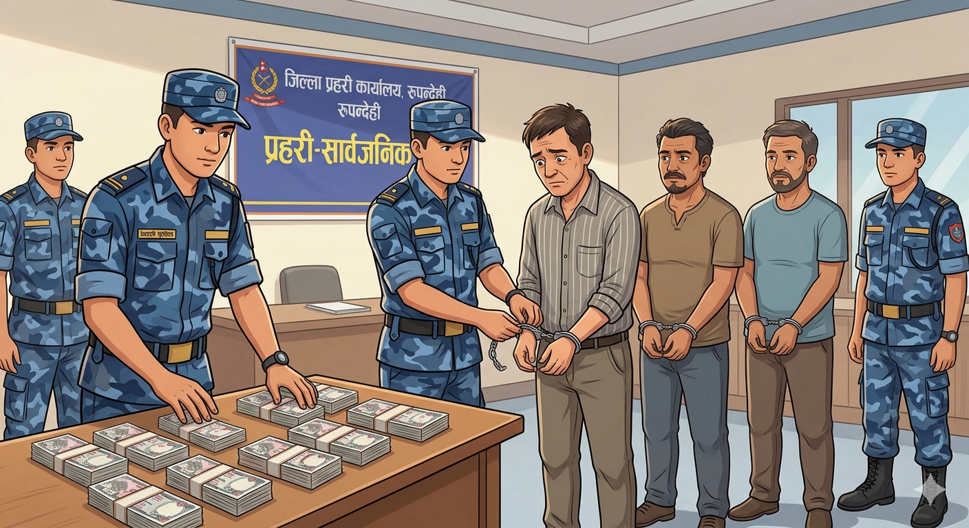 रुपन्देही, ३ वैशाख । रुपन्देही प्रहरीले २१ हजार रुपैयाँ बराबरको नक्कली नोटसहित चार जनालाई पक्राउ गरेको छ। भैरहवा र सैनामैना क्षेत्रबाट विभिन्न मितिमा पक्राउ परेका उनीहरूलाई प्रहरीले आज सार्वजनिक गरेको हो।