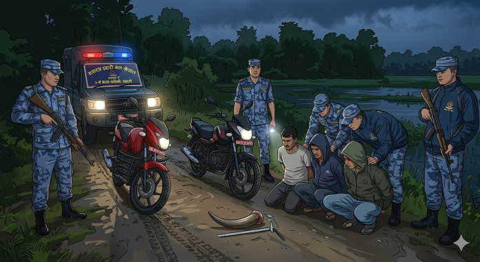 सुनसरीमा गैँडाको खागसहित चार जना पक्राउ; तस्करीमा प्रयोग गरिएका मोटरसाइकल पनि बरामद