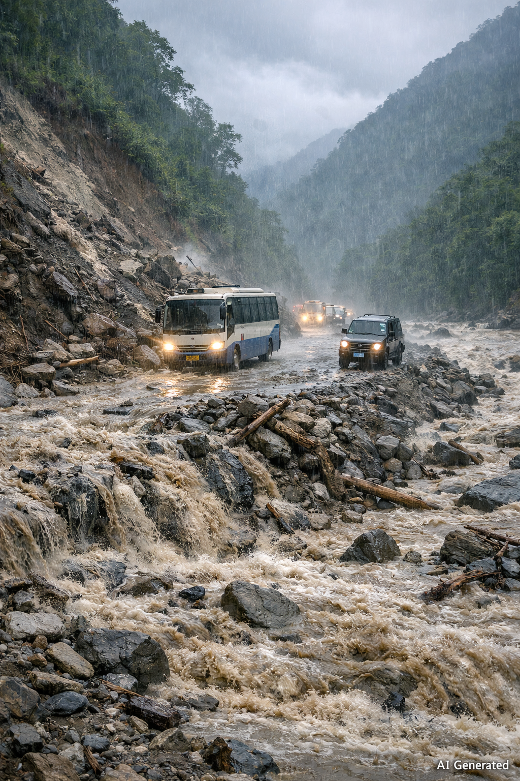जिल्ला ट्राफिक प्रहरी कार्यालय काभ्रेपलाञ्चोकका अनुसार बिरुवाडाँडा, कालढुङ्गा, चौकीडाँडा र मङ्गलटार क्षेत्रमा खहरे खोलाको बहाव बढेको छ । ती स्थानहरूमा बाढी र पहिरो थुप्रिएका कारण सवारी साधन सञ्चालन हुन सकेका छैनन् । गत वर्षको बाढीले सडक क्षतिग्रस्त पारेपछि सो क्षेत्रमा खोलाको किनारबाट अस्थायी ट्र्याक बनाएर गाडी चलाइँदै आएको थियो, जुन अहिलेको वर्षाले पुनः प्रभावित भएको हो ।